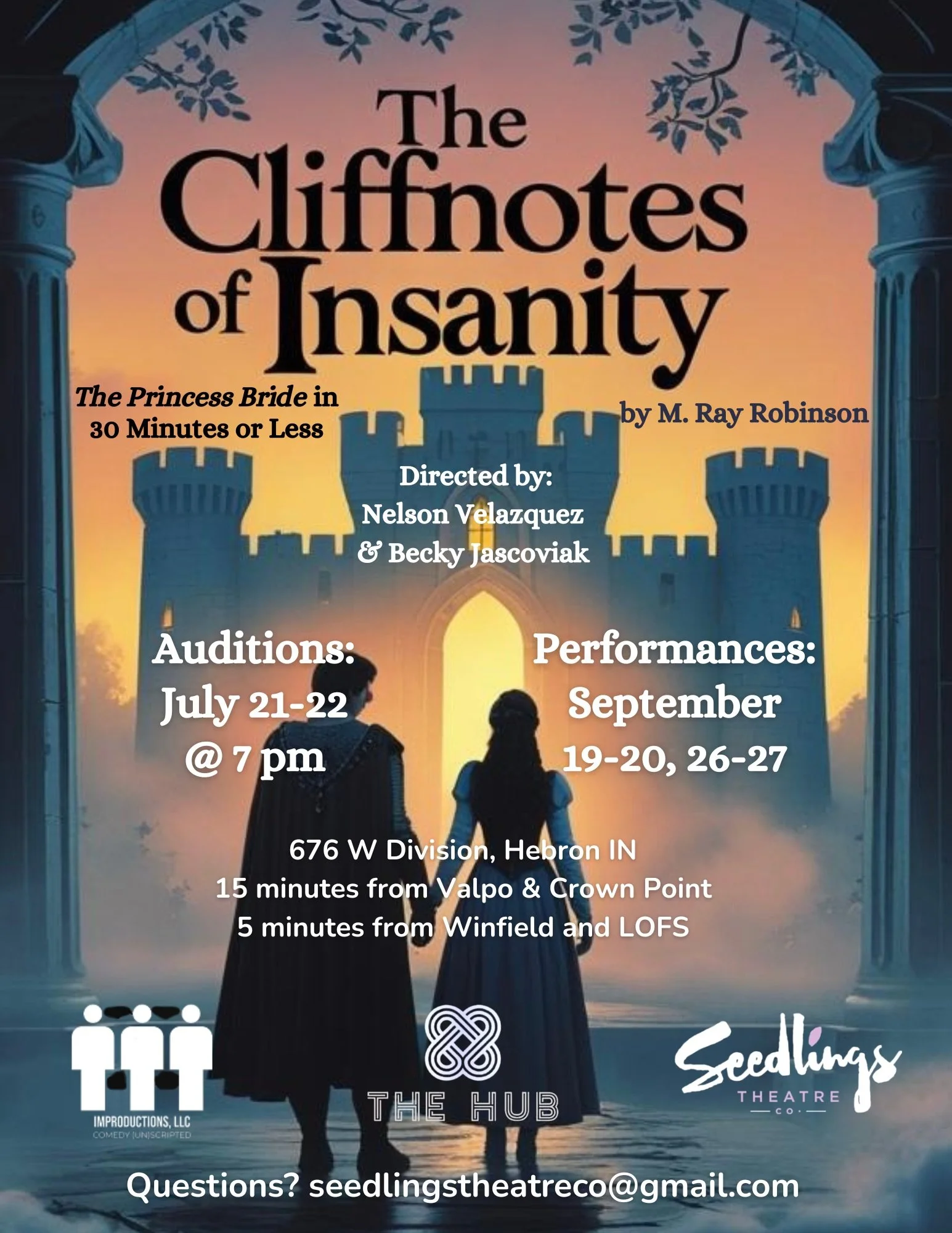Cliffnotes of Insanity - Auditions Tuesday, July 22, 2025 7:00 PM 8:00 PM The HUB NWI 676 West Division Road Hebron, IN United States (map) Google Calendar ICS